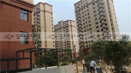 超前涂料 CCTV黃金展位合作伙伴河南鄭州楊金路新科技市場旁邊北徐莊安置房工地面積7萬平方,為了追求高端住宅的需要,能從視覺上彰顯整個建筑的高雅與莊重之美,甲方在經過嚴格考察篩選后,超前涂料順利入圍。項目中指定超前真石漆做為外墻專用漆。