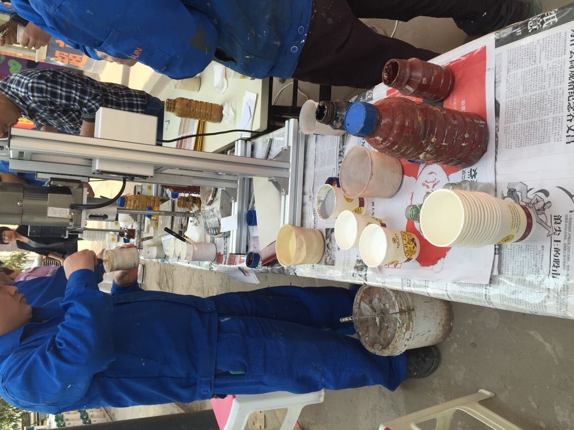 2015年4月10號下午,剛上班,負責多彩漆調色的幾位超人就已經集合到比賽區(qū),桌面上也都擺上了各種需要用的器具,然后這幾位超人開始各自拿著自己需要的器具開始調配起來。