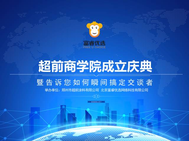 2017年04月19日,超前商學院成立揭牌啟動大會在鄭州隆重召開,鄭州市超前涂料董事長、北京富睿優(yōu)選選董事長—閻運鋒,人社部高級人力資源管理師、WFA國際促動師協會行動學促動師—代志杰,中國智慧策略應用專家、企業(yè)運營管理專家、飛漲策略(北京)品牌管理有限公司董事長—董建明等50多位企業(yè)家與公司員工出席本次活動。