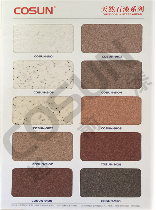 超前天然真石漆系列色卡由鄭州超前技術研發(fā)制作,色卡只展示公司個別產(chǎn)品,如果想了解更多有關真石漆相關產(chǎn)品可以點擊